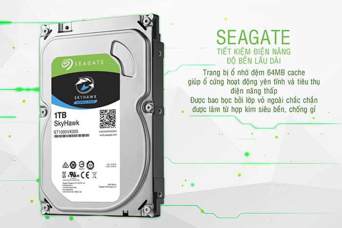 HDD Seagate Skyhawk 1TB 64MB ST1000VX005 dòng chuyên dụng camera hoạt động 24/7, tiết kiệm điện năng