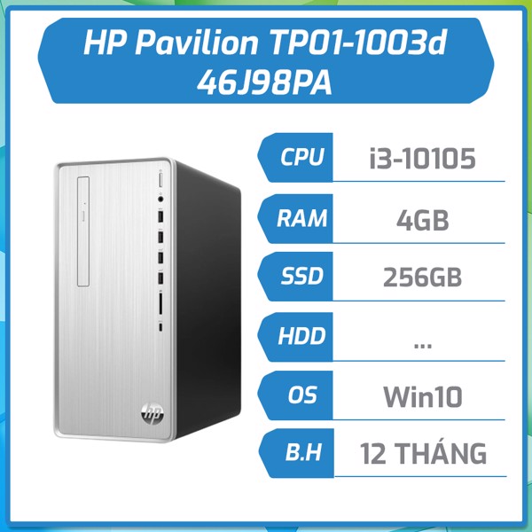 Máy bộ hãng HP Pavilion TP01-1003d, Core i3-10105/4GB/256GB/DVDRW/Win10 46J98PA